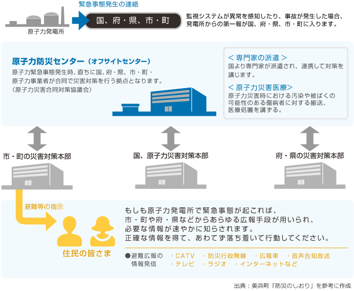 万が一、原子力災害が発生した場合には、当社(原子力事業者)より国や府・県、市・町等に直ちに連絡を行います。